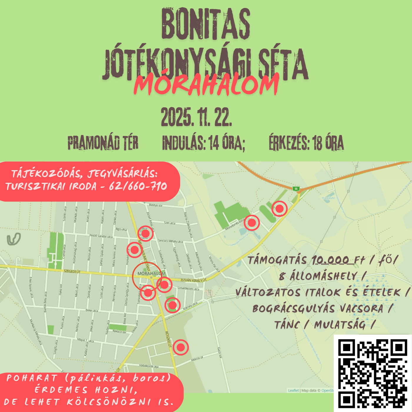 2025. november 22-én, szombaton várunk egy különleges élményre Mórahalmon! Indulás 14:00-kor a Pramonád térről, ahol kezdetét veszi egy könnyed, 5 km-es séta – tele helyi történetekkel, ízekkel és jókedvvel. 🚶♀️🥪🎶