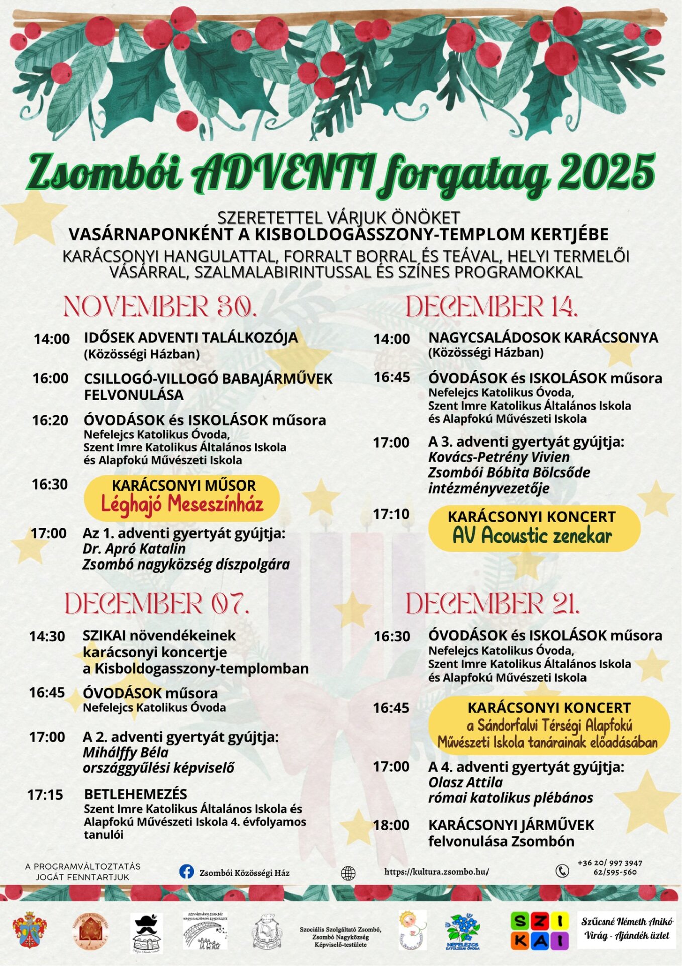2025. november 27. és december 7. közötti időszakban Mórahalmon és térségében megtalálható programok, események.
