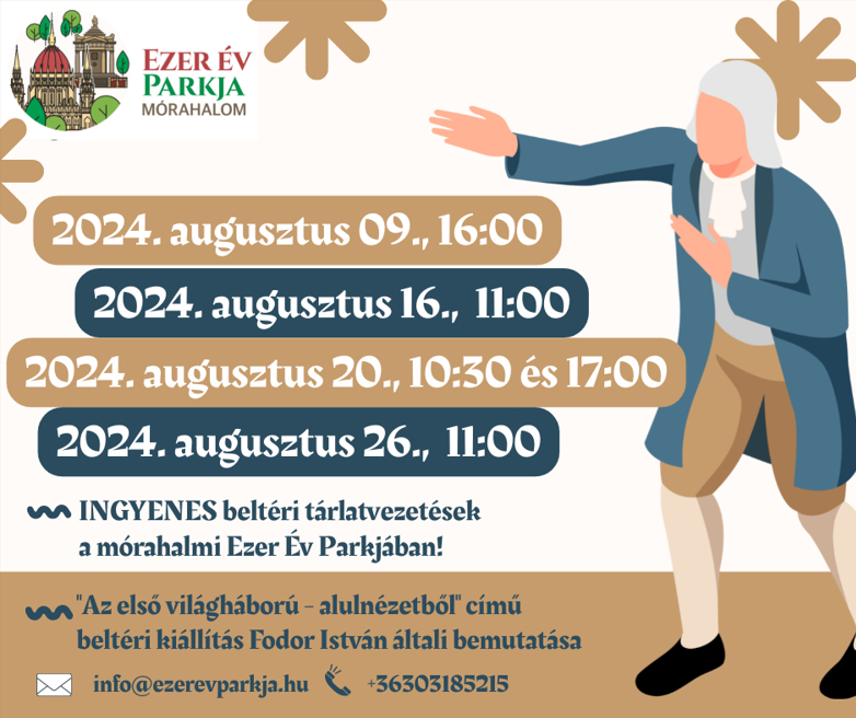 A képen látható időpontokban "Az első világháború - alulnézetből" című beltéri kiállításunk meglátogatása során ingyenes tárlatvezetéseket biztosítunk a számotokra, Fodor István előadásában.