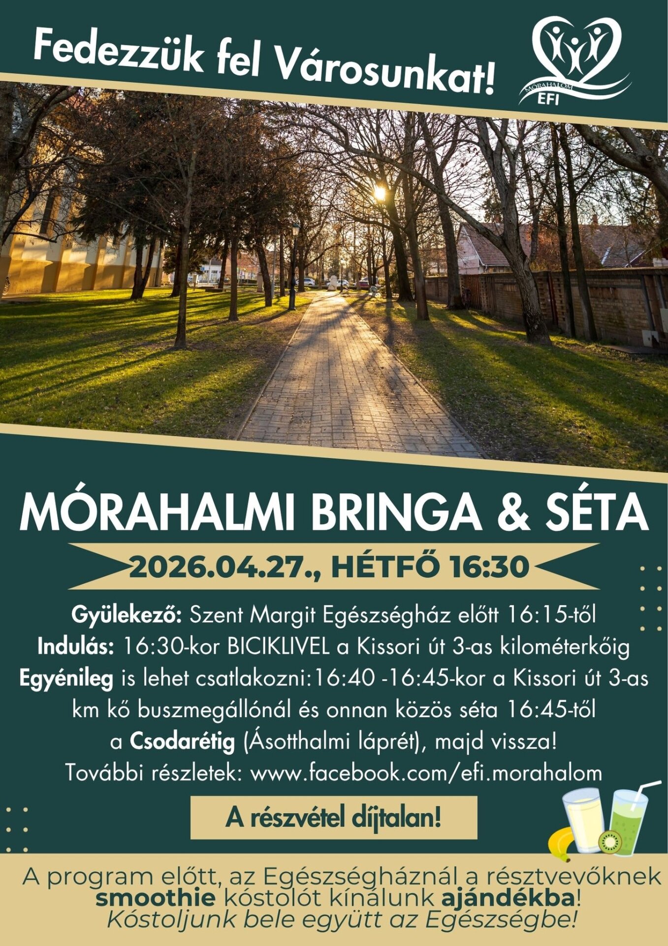 Sok szeretetettel várunk minden kedves érdeklődőt 2026. április 27-én (hétfőn) a Mórahalmi Bringa & Séta programra, ahol biciklivel és gyalogosan is felfedezhetjük városunk különleges helyszíneit!