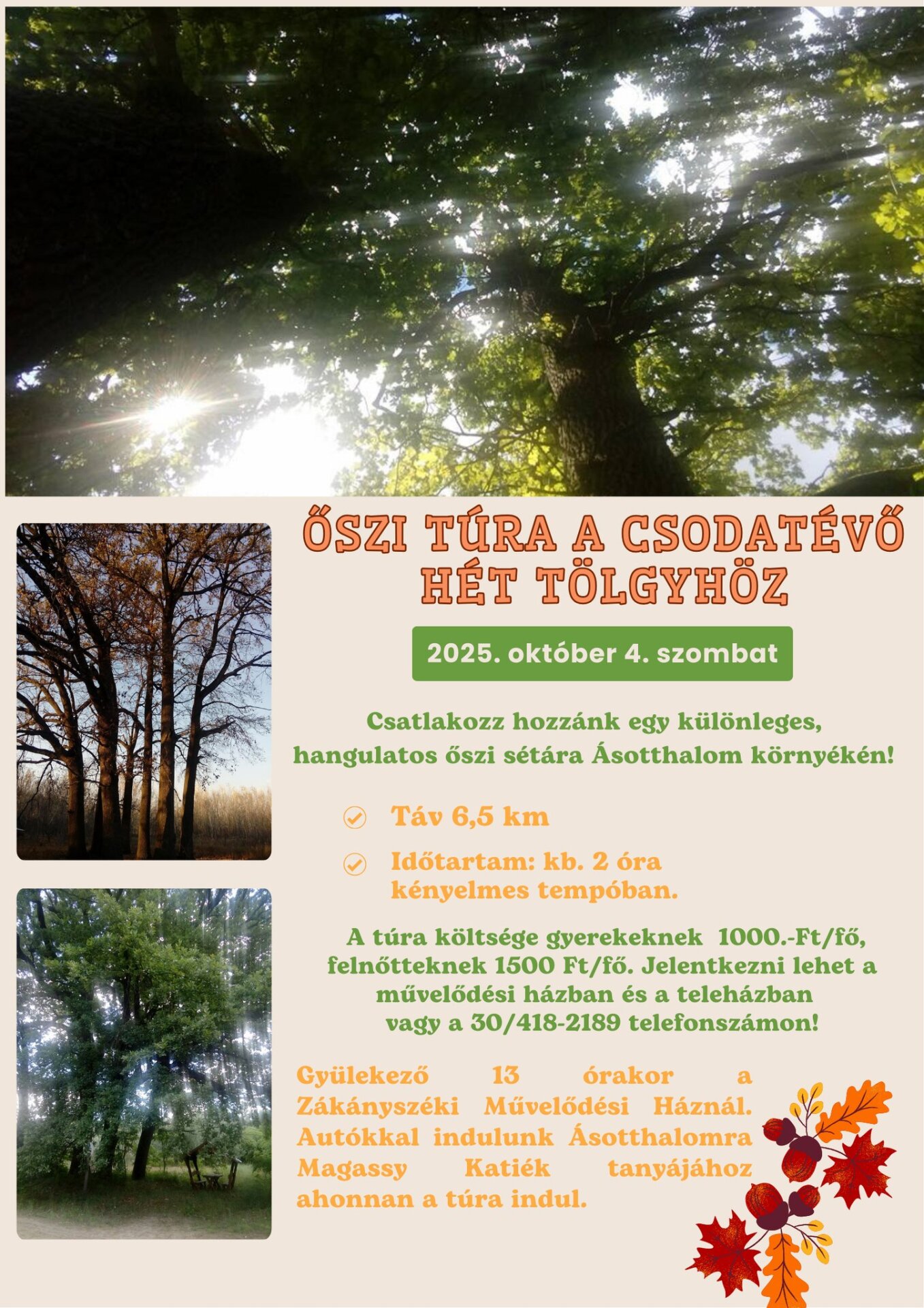 2025. október 4. - Gyülekező 13 órakor a Zákányszéki Művelődési Háznál innen indulunk Ásotthalomra.