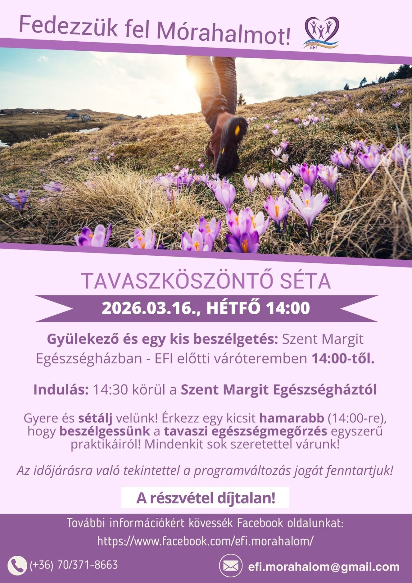 Induljunk el együtt egy kellemes, tavaszköszöntő sétára, ahol a mozgás mellett egy kis beszélgetésre is jut idő.